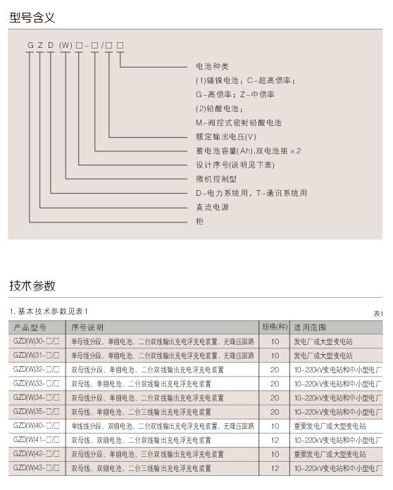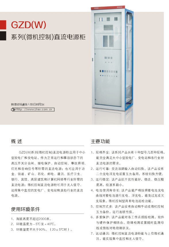GZD(W)係列(微機控製)直流電源櫃應用於中小 型(xíng)發電廠和變電站,作為正常運行(háng)和(hé)事故狀(zhuàng)態下的 高(gāo)壓(yā)開(kāi)關分合閘、繼電保護、自動控製、事故照明、 燈(dēng)光和音響信號等所需的直流電源;也可應用於冶 金、鐵道、礦山、石化、郵電、通訊、醫(yī)療衛生、 銀行、賓館、高層建築和計算機網絡等行業所需的 直流電源:微機控製直(zhí)流電源(yuán)櫃(guì)可用於無人值(zhí)守、