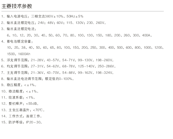 4、電池使用壽(shòu)命(mìng)長:該產品能嚴格(gé)按照蓄電池充電曲線對(duì)蓄電池進行充電、浮充(chōng)電,避免過充或欠充現象。微機控製型具(jù)有電池巡檢功能。